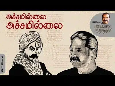 Vairamuthu’s defiant lyrics drive ‘Achamillai Achamillai’ from the album Naatpadu Theral. Composer Thenisai Thendral Deva creates militant rhythms supporting Narayanan Ravishankar’s vocal delivery. The track projects collective courage against oppression.