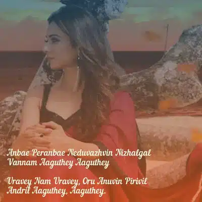Anbae Peranbae Lyrics (AKA Anbe Peranbu song) from Suriya’s film ‘NGK’ with the most lovable vocals from the duo of ‘Sid Sriram’ & ‘Shreya Ghoshal’ is a latest Tamil duet song. Uma Devi has penned the enertaining Tamil lyrics for “ANBAE PERANBAE” track with the music video featuring Rakul Preet Singh & Suriya.