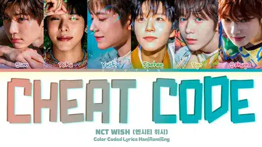 NCT WISH sings the playful song ‘Cheat Code’ from their album COLOR – The 3rd Mini Album. Andrew Choi, JSONG, KENZIE, and Rouno write the lyrics and compose the music. The song compares finding love to navigating a challenging video game.