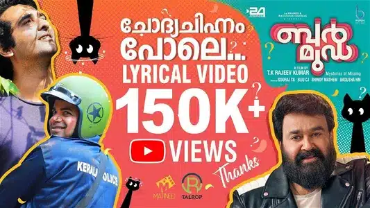 Ramesh Narayan and Mohanlal bring a haunting melody in Chodhyachinnam Pole from the 2022 album Bermuda. Lyricist Vinayak Sasikumar crafts a story of unsettling mystery. Mohanlal sings about a world shaken by an enigmatic presence that makes the sun hide.