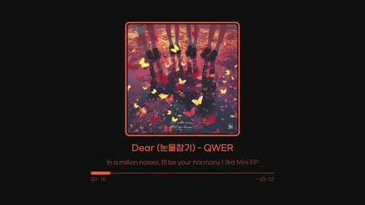In a million noises, I’ll be your harmony album features QWER in Dear, crafted by lyricists Elum and GESTURE among others. The composers Hina and ONE.KI developed a gentle melody for this track. Their collective work forms a melancholic soundscape that mirrors the emotional weight of the lyrics.