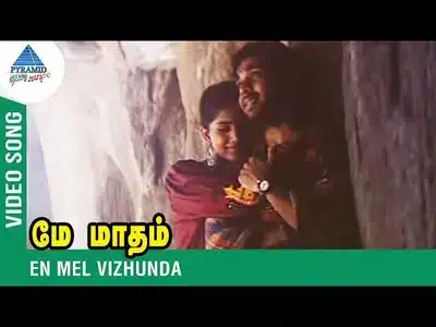A.R. Rahman creates the melody for ‘En Mel Vizhundha’ in the album May Madham. Vairamuthu writes the lyrics, and P. Jayachandran and K. S. Chithra sing the duet. They blend their voices to express deep love.