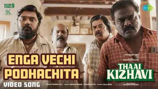 Nivas K Prasanna and Arunraja Kamaraj join forces in ‘Enga Vechi Podhachita,’ a lively track from the album Thaai Kizhavi. The musician crafts a bouncy rhythm, while the poet pens playful and mysterious verses. The song stars Radikaa Sarathkumar, Singam Puli, and others, adding a vibrant energy to the mix.