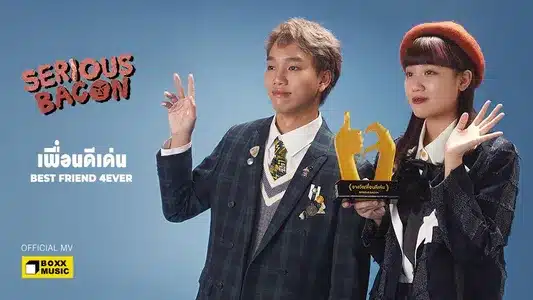 The ‘เธอ ๆ เพื่อนเราชอบ (Guess Who?)’ lyrics blend humor and vulnerability. SERIOUS BACON offers a heartfelt tale of love that’s both sweet and relatable.