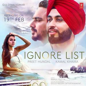 Ignore List by Preet Hundal & Kamal Khaira, is Magnificent Urban Punjabi Song With Music Formed by Preet Himself.Lyrics of Sanu Ignore Lists ch Na Pa Songs Are Scripted by Preet Hundal Though Amusing Video of The Song is Directed by Rahul Dutta.
