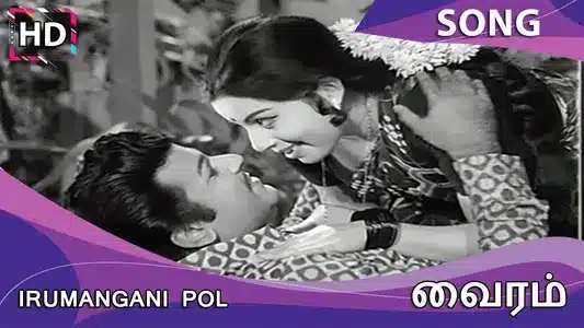 S.P. Balasubrahmanyam and J. Jayalalitha perform ‘Iru Mangani’ in the film Vairam. Lyricist Kannadasan and composer T.R. Pappa craft a duet balancing desire and restraint. Their playful exchange sets the song’s flirtatious tone.