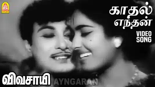 T. M. Soundarajan and P. Susheela perform ‘Kaadhal Enthan’ from the album Vivasayee. Lyricist Udumalai Narayanakavi and composer K. V. Mahadevan frame a lively vocal exchange about marriage promises versus romantic feelings.