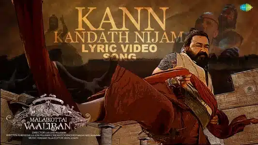 Mohanlal sings Kann Kandath Nijam from the film Malaikottai Vaaliban starring Mohanlal. Suhail Koya writes the lyrics, and Prashant Pillai composes the raw, earthy arrangement. The song features Mohanlal as the warrior Vaaliban.