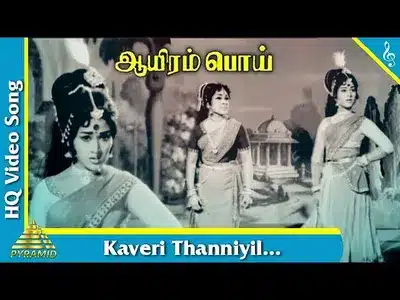 Manorama and L. R. Eswari perform ‘Kaveri Thanniyil Kulichavadi’ from the album Aayiram Poi. Lyricist Kannadasan and composer V. Kumar frame a playful rivalry between two women boasting river heritage.