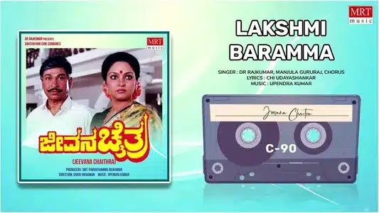 Dr. Rajkumar and Manjula Gururaj voice a devotional plea to Lakshmi in Jeevana Chaithra. Lyricist Chi. Udayashankar and composer Upendra Kumar craft a sacred atmosphere through repetitive invocations. The track blends reverence with domestic imagery, framing the goddess as both divine force and household member.