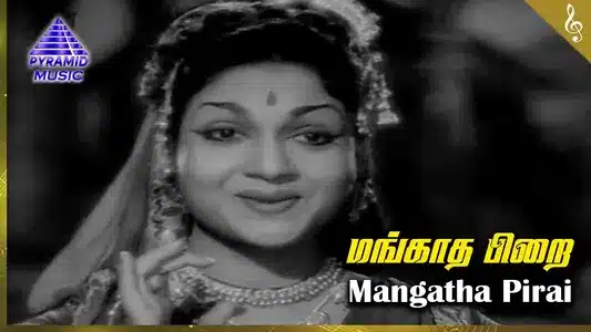 P. Susheela and Ghantasala perform ‘Mangaadha Pirai’ from the album ‘Mangayar Ullam Mangatha Selvam.’ Lyricist Thanjai N. Ramaiya Dass and composer P. Aadhinarayana Rao craft a devotional piece centered on Lord Shiva. The track celebrates Bharatanatyam’s divine origins through intertwined vocals.