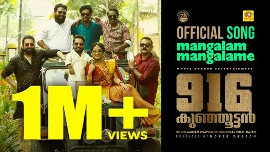 916 Kunjoottan features the wedding anthem Mangalam Mangalame. Sachin Raj and Sreejish Subramanian sing with joyous traditional flair. Lyricist Ajeesh Gopan writes vivid vows, while composer Anand Madhusoodanan brings festive music.