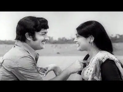Kannadasan compares a woman’s hair to a fragrant flower birthing divine music. He writes that thirst ends when dew is seen, linking beauty to fulfillment. The lyrics describe riverbanks and fruit gardens framing admiration.