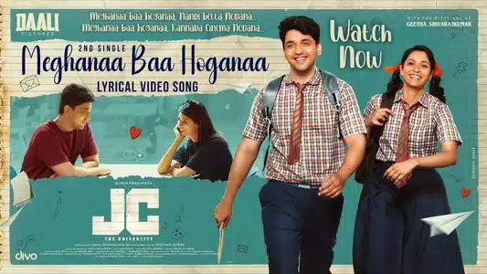 Pancham Jeeva and Srilakshmi Belmannu capture early romance’s optimism in Meghanaa Baa Hoganaa. The lyrics translation reveals a boy’s marriage dreams and shared moments. Jc The University delivers lighthearted courtship.