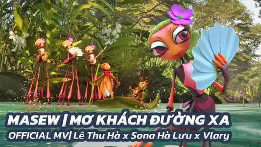 Masew sings Mơ Khách Đường Xa from the album Dế Mèn: Cuộc Phiêu Lưu Tới Xóm Lầy Lội. Harose writes the lyrics and composes the music with Masew. The song creates a peaceful, folksy world for a weary traveler.