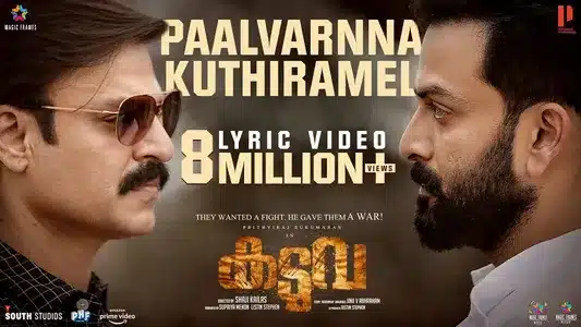 Kaduva album track ‘Palvarna Kuthiramel’ combines Jakes Bejoy’s powerful percussion with Santhosh Varma’s verses. Libin Scaria’s lead vocals establish a primal battle atmosphere. The composition frames a historic showdown between a determined hero and venomous opposition.