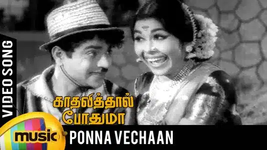 Seerkazhi Govindarajan and L. R. Eswari perform ‘Ponne Vachaan’ from the movie Kathalithal Pothuma with Kannadasan’s lyrics. Composer S. Vedhachalam supports their vocal exchange with light instrumentation. The duet maintains a humorous, flirtatious tone throughout.