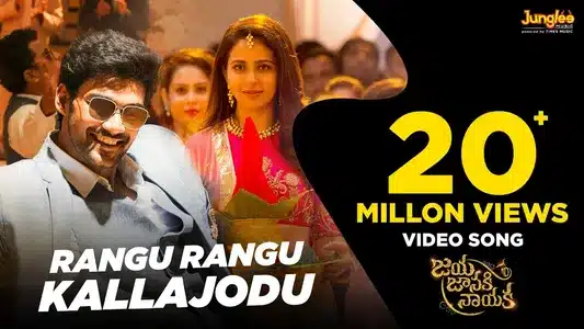 Hemachandra and Sravana Bhargavi deliver a high-energy dance command in “Rangu Rangu Kallajodu.” From the album Jaya Janaki Nayaka, the track features actors Bellamkonda Srinivas and Catherine Tresa. Lyricist Chandrabose establishes a scene of chaotic, collective celebration.
