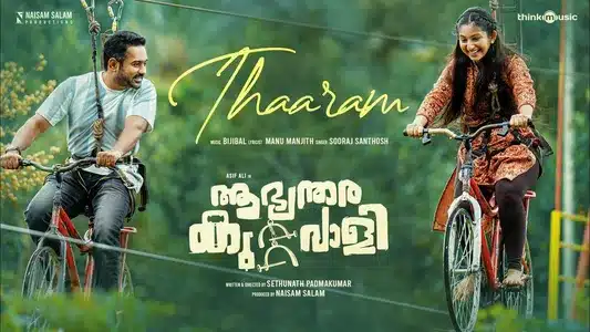 Aabhyanthara Kuttavaali features Bijibal, Sooraj Santhosh, and Manu Manjith. Sooraj Santhosh sings a gentle melody about love. Manu Manjith writes about a beloved who arrives like moonlight. Bijibal offers a dreamy arrangement that lets the heart’s strings play.